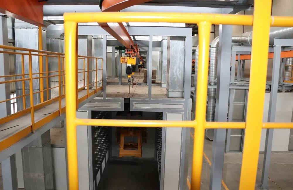 Intelligent coating line for structural partsBased on the principles of economy, rationality, safety, reliability, intelligence and practicality, the assembly line adopts the mode of “centralized monitoring and decentralized control”, PLC+ man-machine interface, and realizes automatic control of product delivery, which can be automatically delivered to each station for operation according to the technological requirements of products. The staff at the station only need to perform operations on the specific work at the station, without moving back and forth or transporting parts, thus effectively improving the operation efficiency.Intelligent assembly line and auxiliary lineThe main line adopts the transportation mode of ground drag chain+trolley, the auxiliary line adopts the form of plate chain line, and the main line and auxiliary line are arranged in the shape of “T”, which makes the logistics transportation more reasonable. The lifting facilities in the workshop are divided into two layers, and the small crane is mainly responsible for the assembly, while the large crane is responsible for the assembly of finished products on the main line, which reduces the waiting time for operation and effectively provides operation efficiency. At the same time, the line body reserves the space for subsequent expansion, which is convenient for further promotion.